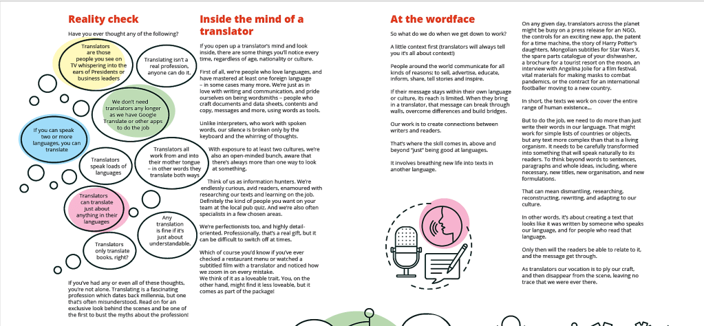 A great free document by the ProZ.com team about Translators and what they (we) actually do! ![]()